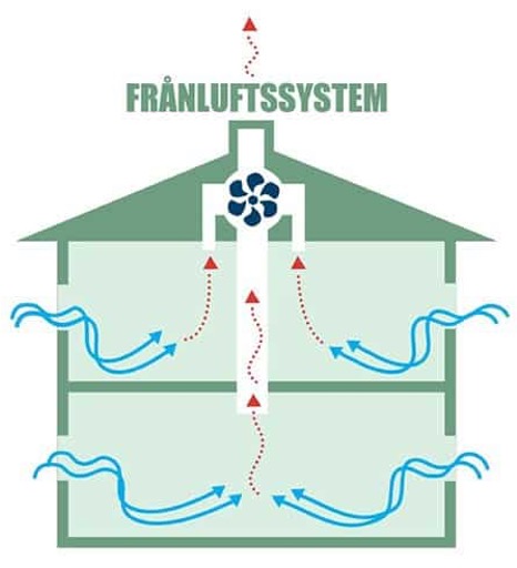Vår fastighet är utrustad med ett s.k. F-system (mekaniskt frånluftssystem). Detta system skapar undertryck i lägenheterna. Samtliga lägenheter är anslutna till s.k. stigare som mynnar ut i två fläktrum på vinden.